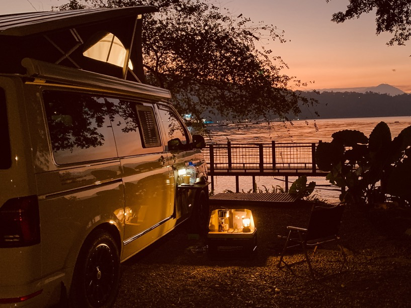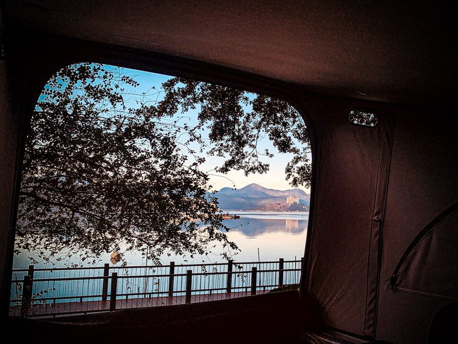 第一晚在朝霧碼頭車宿,是這趟關鍵安排。隔天日出從灰藍慢慢推進到金橘,湖面和山稜線一起亮起來,畫面非常有辨識度,真的會讓人願意再來一次。